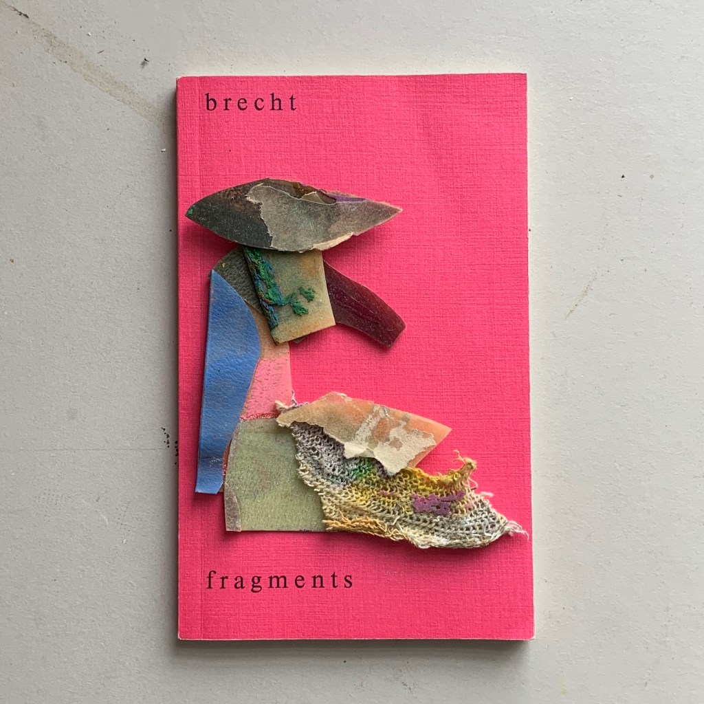I love the combination of the work on top of this hue, but, thinking through what to make of the placement, I made a connection between the collage and playful assembly of Mermanmade, which, prior to its coming-into-being, I had no premonition or idea I would make – and the process of collage that Brecht used in order to create plots. Pieces can be moved about to generate ideas, forms, relationships.